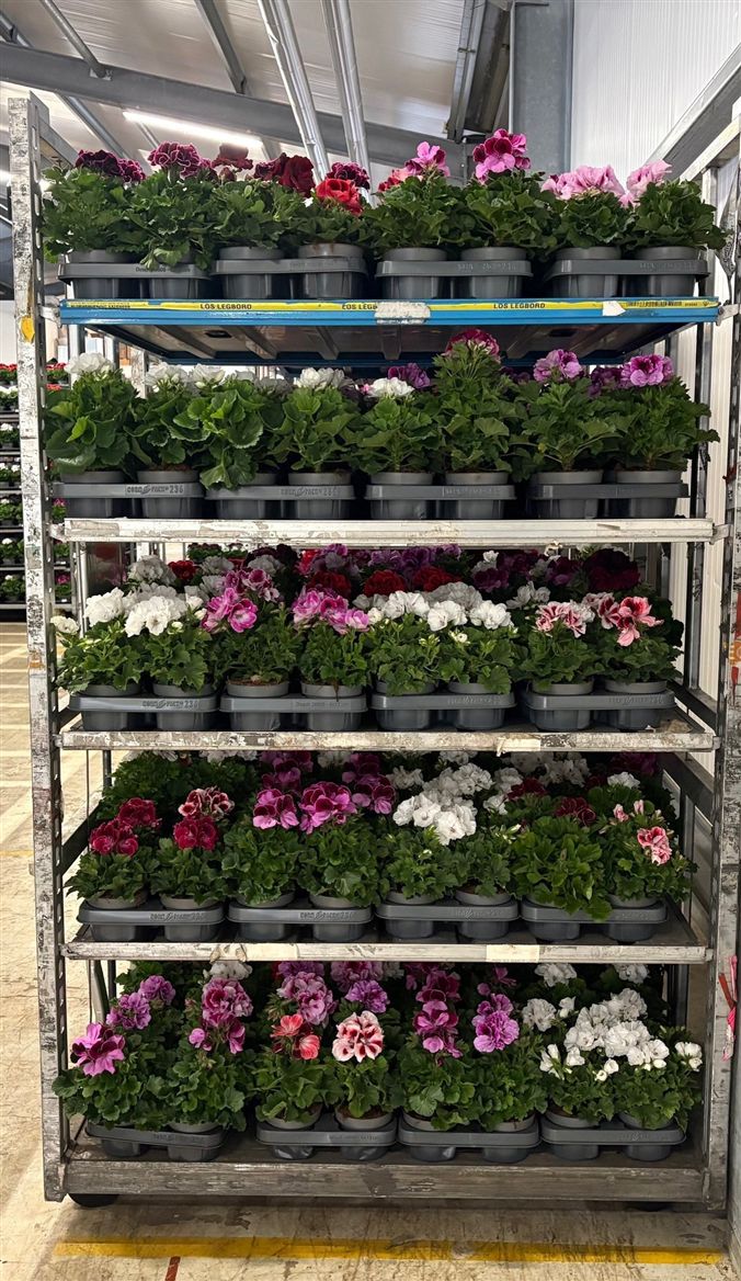 ≥ 1 pcs £ -.-- Colli 20 Pot Size 12 cm Content 6 Minimum plant height 28 cm Per shelf 36 Number of cuttings/plants per pot 1 Per trolley 288 Maturity stage 3-3 Stock 120 £ -.--≥ 1 pcs £ -.--Pelargonium Grandfl. Mix