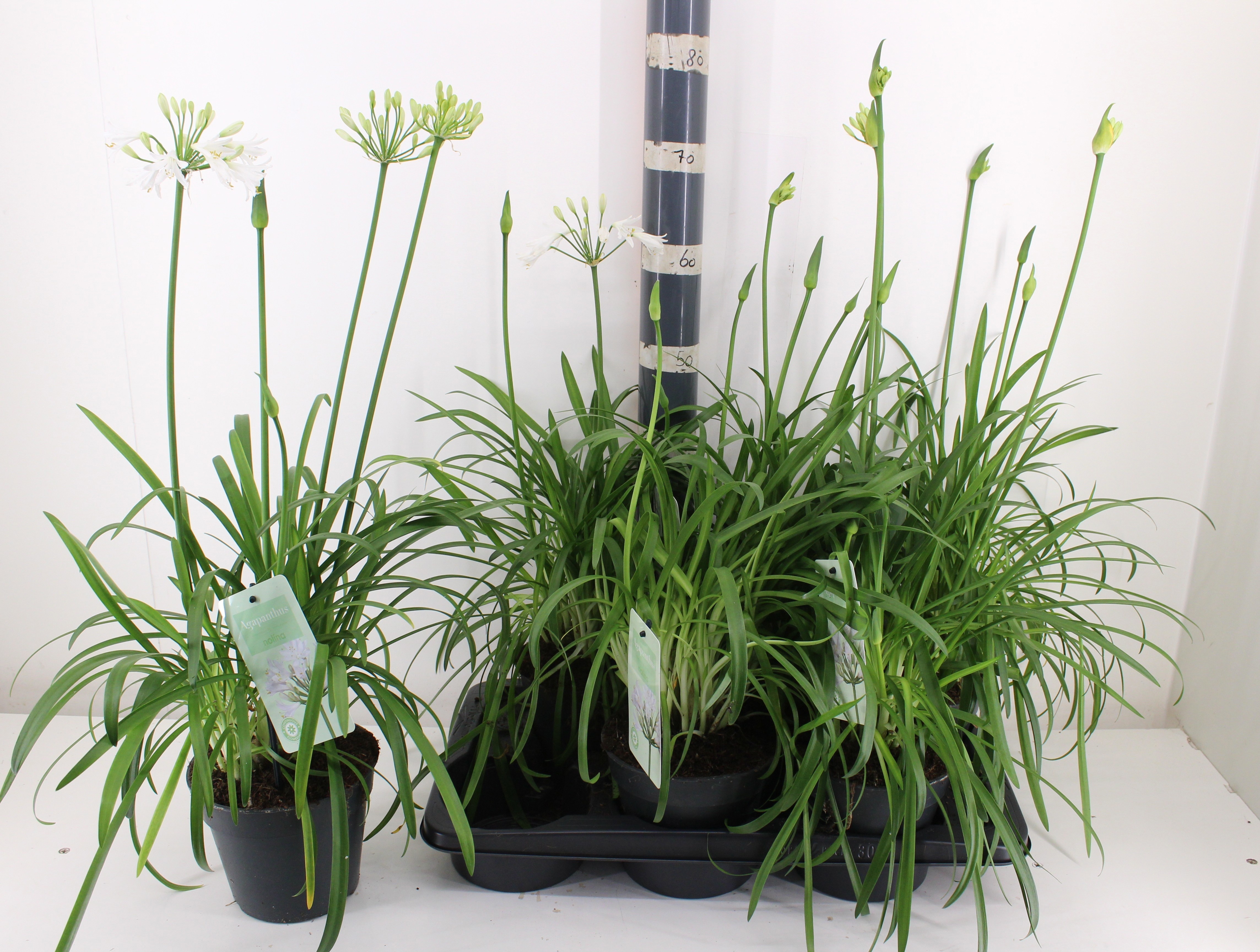 ≥ 1 pcs £ -.-- Colli 12 Pot Size 17 cm Content 6 Minimum plant height 70 cm Per shelf 24 Min. Number of flowers/inflorescences per pot 3 Per trolley 72 Maturity stage 1-1 Stock 72 £ -.--≥ 1 pcs £ -.--Agapanthus Summer Love White