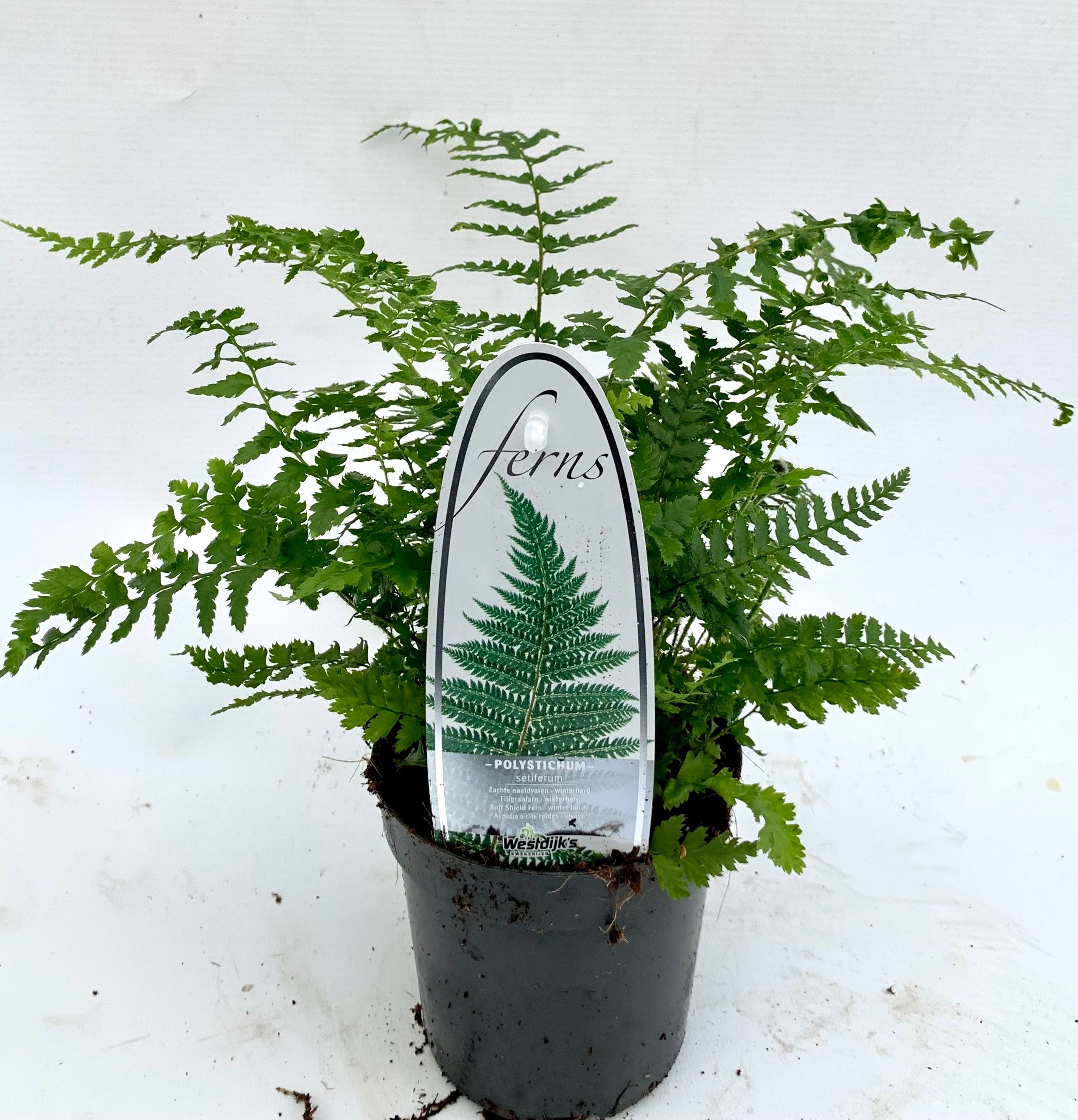≥ 1 pcs £ -.-- Colli 4 Pot Size 11 cm Content 15 Minimum plant height 15 cm Per shelf 60 Number of buds cut flowers Minimal 30 Per trolley 600 Stock 60 £ -.--≥ 1 pcs £ -.--Polystichum Setiferum
